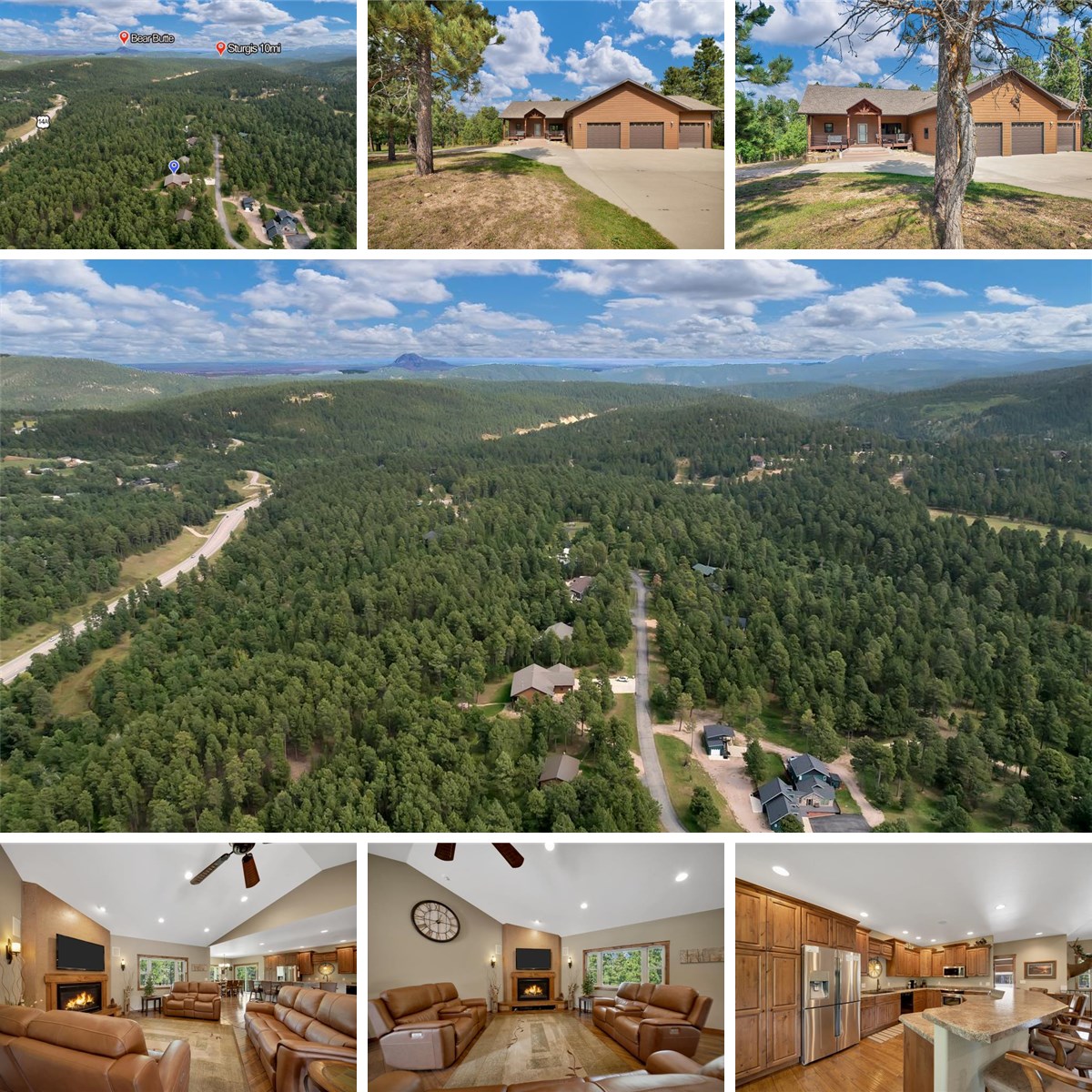 Stunning Retreat in Boulder Canyon located in Aspen Hills Subdivision. Experience the perfect blend of luxury, space, and nature in this 5-bedroom, 3.5-bath home nestled on 5.29 acres in the scenic Boulder Canyon. Offering the best of mountain living while being just minutes from Deadwood, Sturgis, and Spearfish Canyon, this home is an outdoor enthusiast’s dream. Step inside to find spacious, light-filled living areas,complete with a cozy fireplace for those chilly nights. The open-concept design flows seamlessly into the gourmet kitchen, perfect for entertaining. The primary suite offers a private retreat with a spa-like en-suite bath, while additional bedrooms provide ample space for family and guests. Enjoy the stunning surroundings from three covered decks, ideal for relaxing and soaking in the peaceful views. Outside, gather around the fire pit for unforgettable evenings under the stars. A 3-stall garage plus a separate shop with two garage doors and a living area offers endless possibilities—whether you need extra workspace, storage, or potential guest quarters. The convenient circle driveway makes access easy, even for larger vehicles. This property offers privacy, space, and modern comforts, all while being close to world-class outdoo rrecreation, dining, and entertainment.