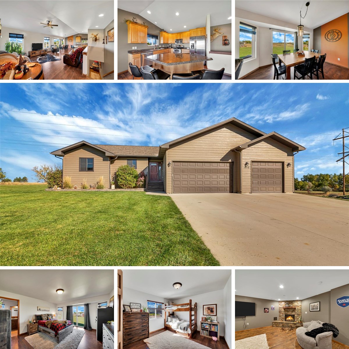 Discover the perfect blend of style, space, and comfort in this immaculate, move-in-ready 4-bedroom, 3-bathroom home situated on a generous.49 acre corner lot. From the moment you step inside, you'll be greeted by an open floor plan bathed in natural light, accentuated by vaultedceilings that create an airy, expansive feel. The main level is designed for modern living and convenience, featuring a fantastic kitchen with a breakfast bar and main floor laundry. The quality of construction shines through with details like solid wood six-panel doors and newer flooring throughout, providing a fresh, updated aesthetic. The lower level is an entertainer's dream, offering a massive large family room with a cozy rock fireplace, perfect for relaxing or hosting gatherings. The basement also includes two spacious bedrooms, ideal for guests or a home office. Enjoy the beautiful Black Hills weather from your open patio, overlooking the yard. Completing this exceptional property is a practical 3-stallgarage for all your vehicles and storage needs. This is a well-built home in a prime corner location, ready for you to start making memories! Don't miss the opportunity to own this fantastic home.